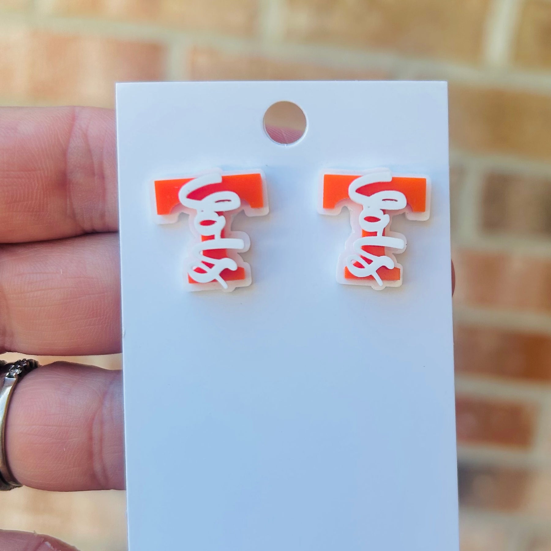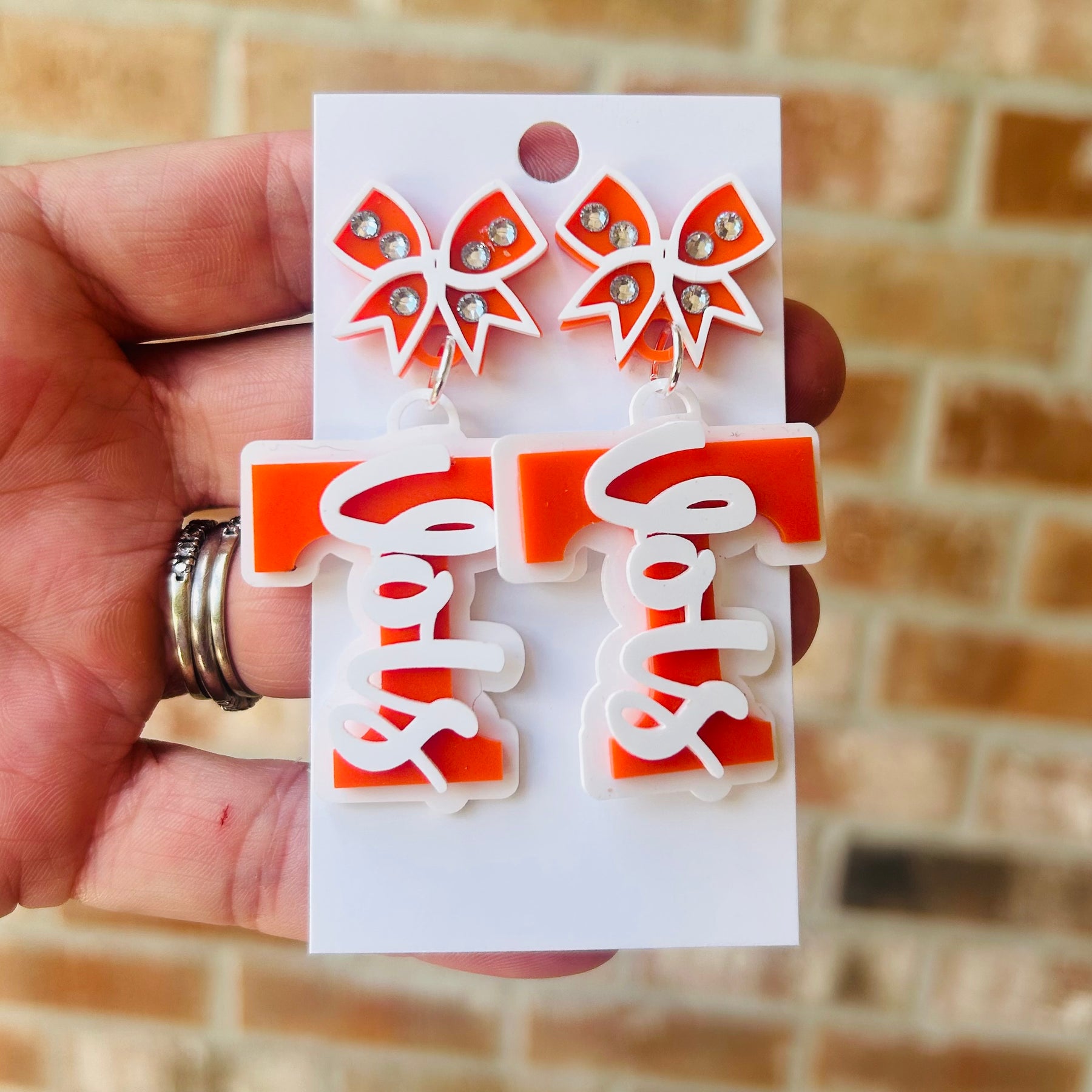 Texas Longhorns - HookEm Horns. Longhorn studs with dangles and HookEm Horns