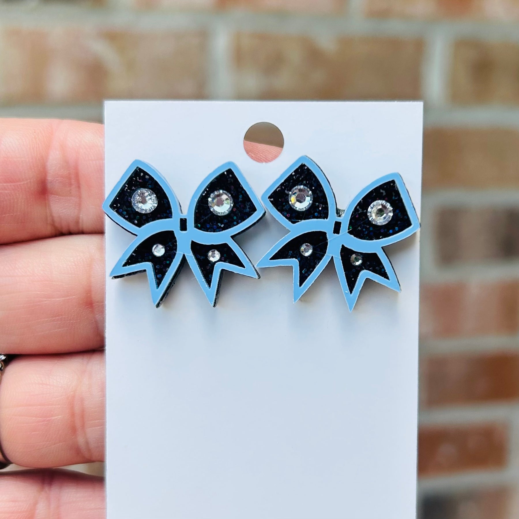 Double layer bow stud with double layer cowboys dangle. Can be customized to any colors