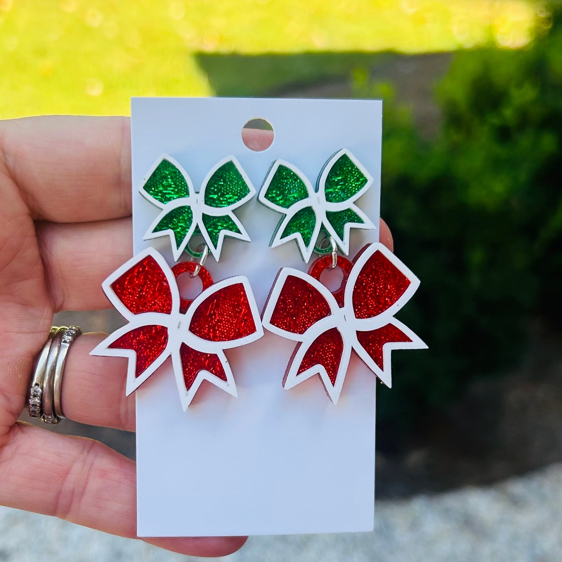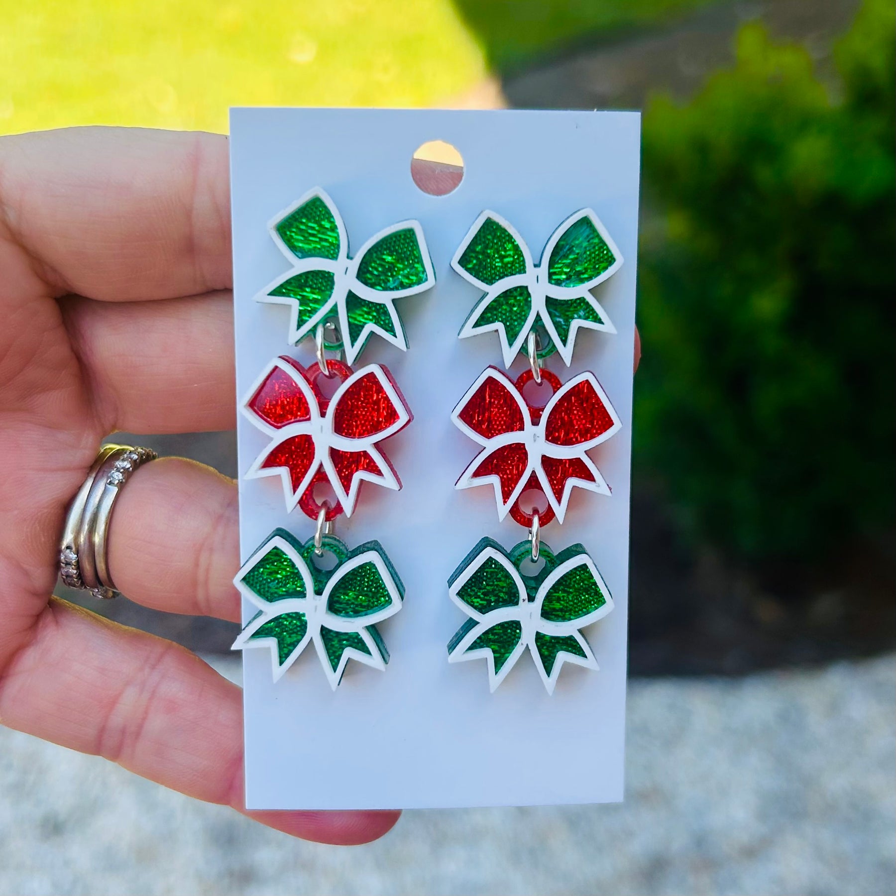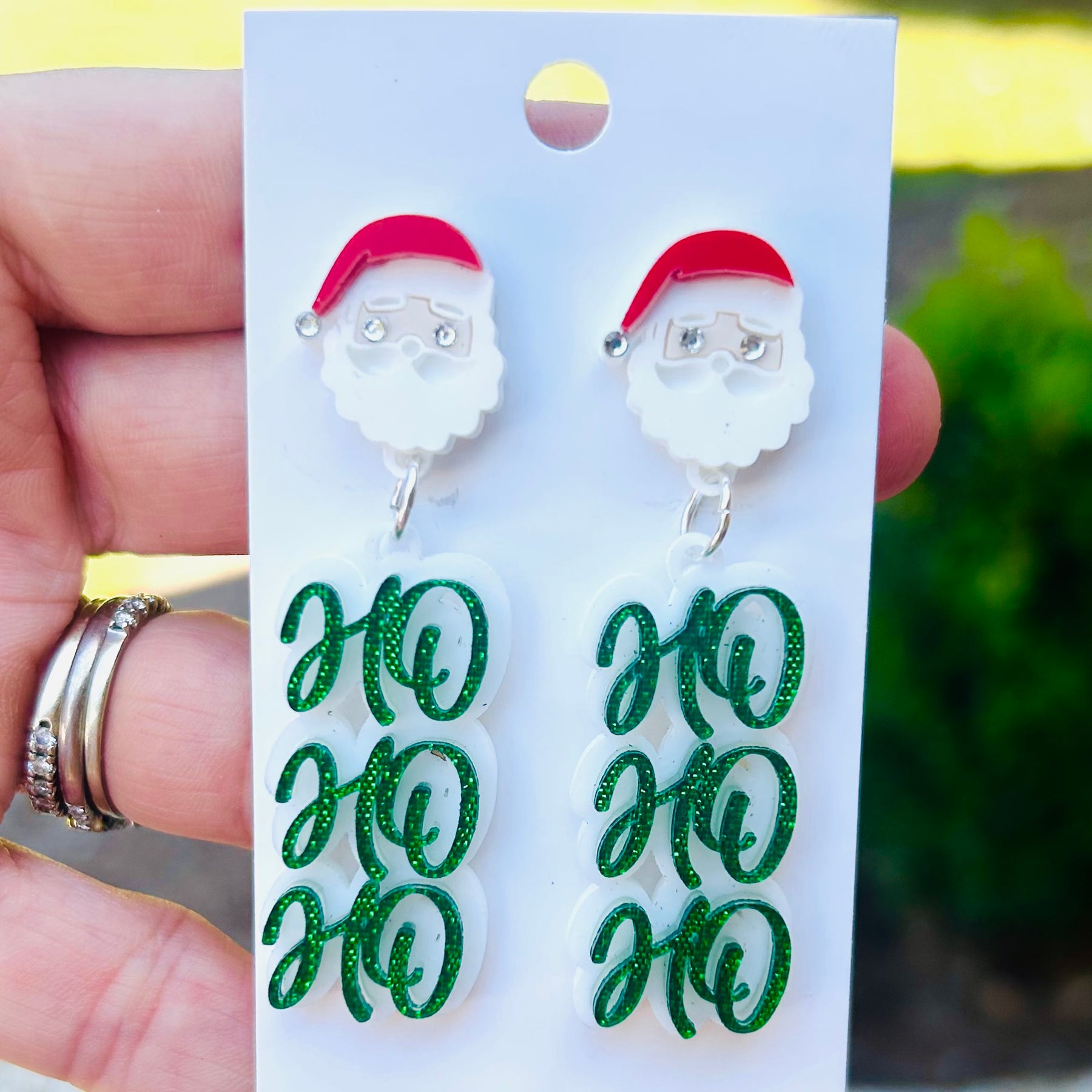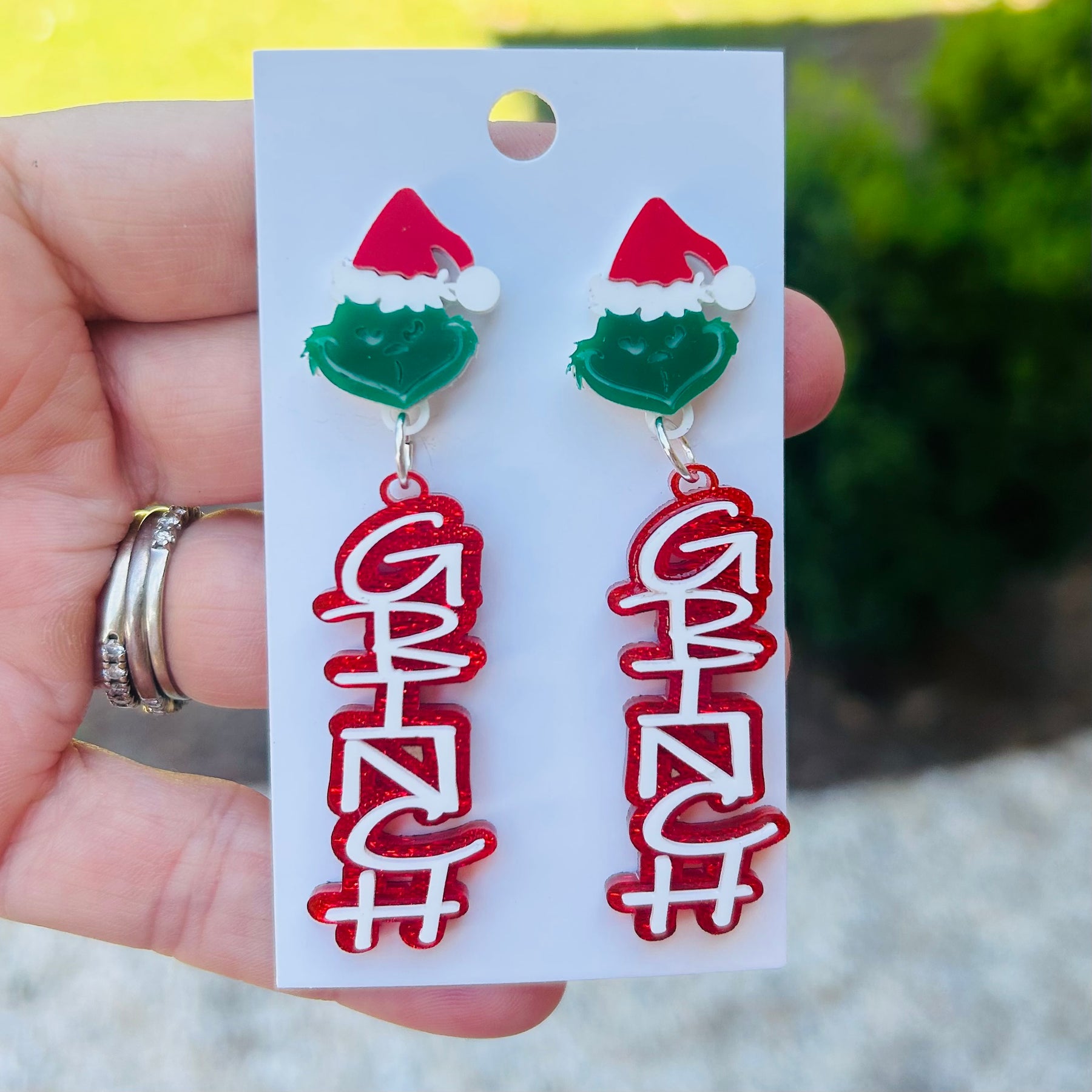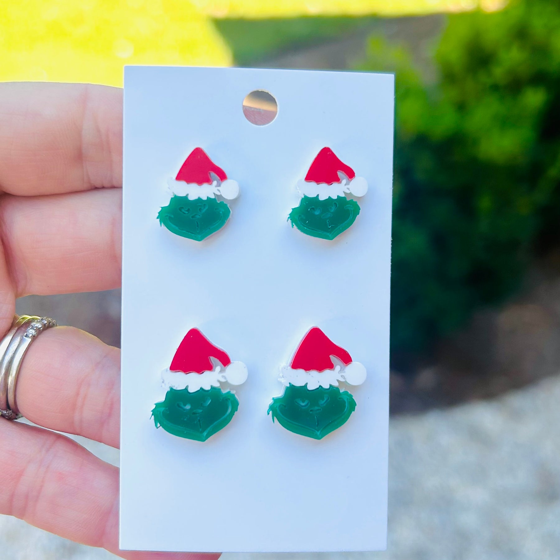 Small grinch studs about .5” and dangles total length about 2” red white and green non glitter