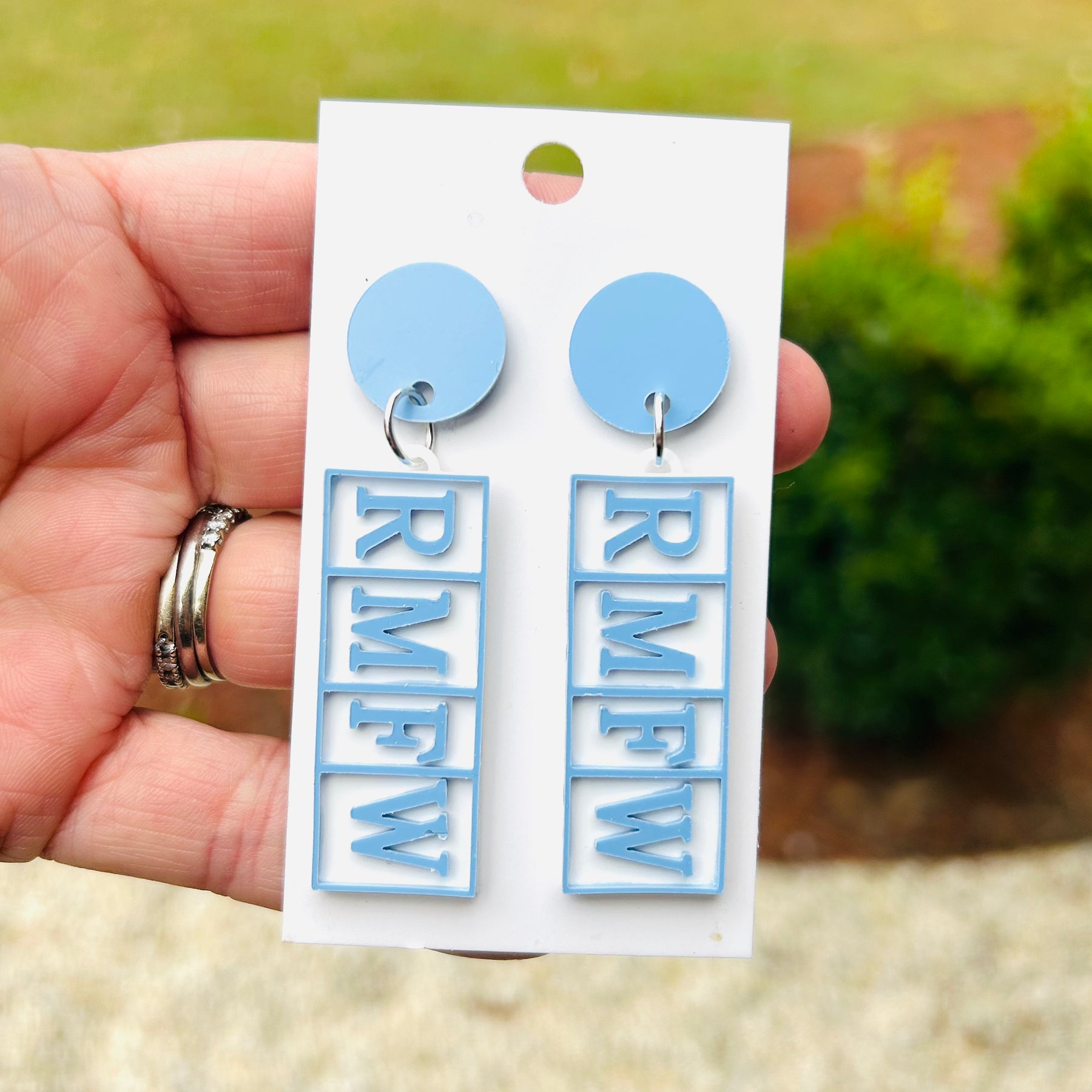Univeristy of South Alabama Jaguars. Red white and blue logo dangles and studs