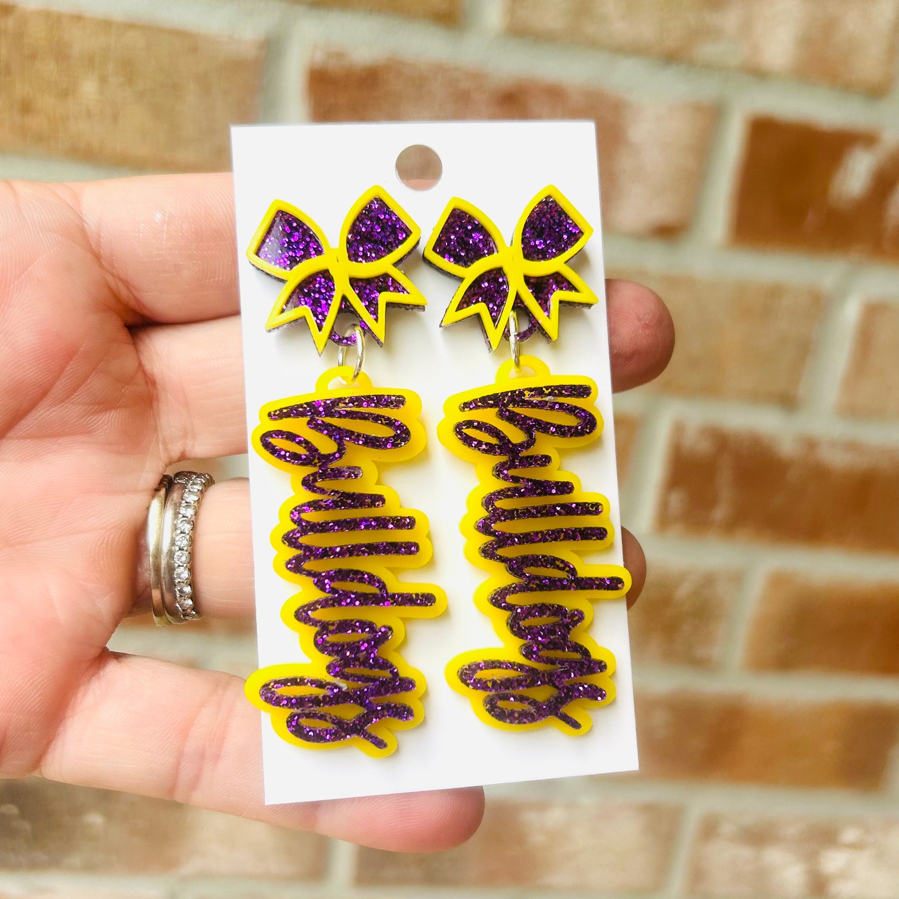 Double Layer bow stud with Double layer wildcats dangle. They can be customized to any colors